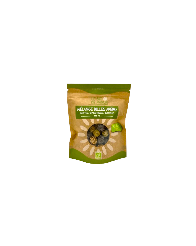 Notre Mélange de Billes Apéro Carottes, Patates Douces & Butternut est 100 % bio, sans additifs ni conservateurs, pour un snack gourmand et responsable.