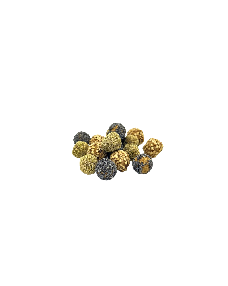 Notre mélange de billes croquantes "Patates douces & romarin", "Carottes & cumin" et "Butternut & curry" apportent une touche originales à vos apéritifs. Leur mélange de saveurs délicatement épicées séduira tous les palais. Une alternative gourmande et saine aux biscuits traditionnels !