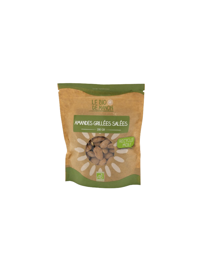 Nos amandes grillées salées sont 100 % bio, certifiées Ecocert. Elles peuvent contenir des traces d’autres fruits à coque, gluten, arachides, sésame ou soja.