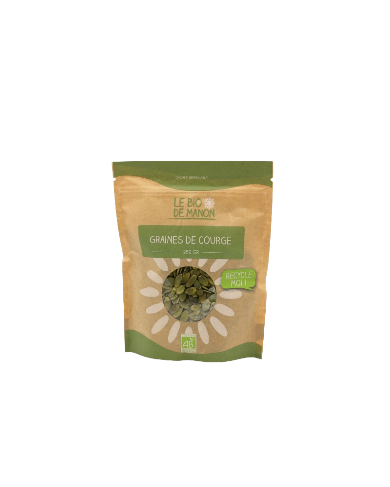 Nos graines de courge sont 100 % bio, sans additifs ni conservateurs, cultivées avec soin pour préserver goût et bienfaits naturels.