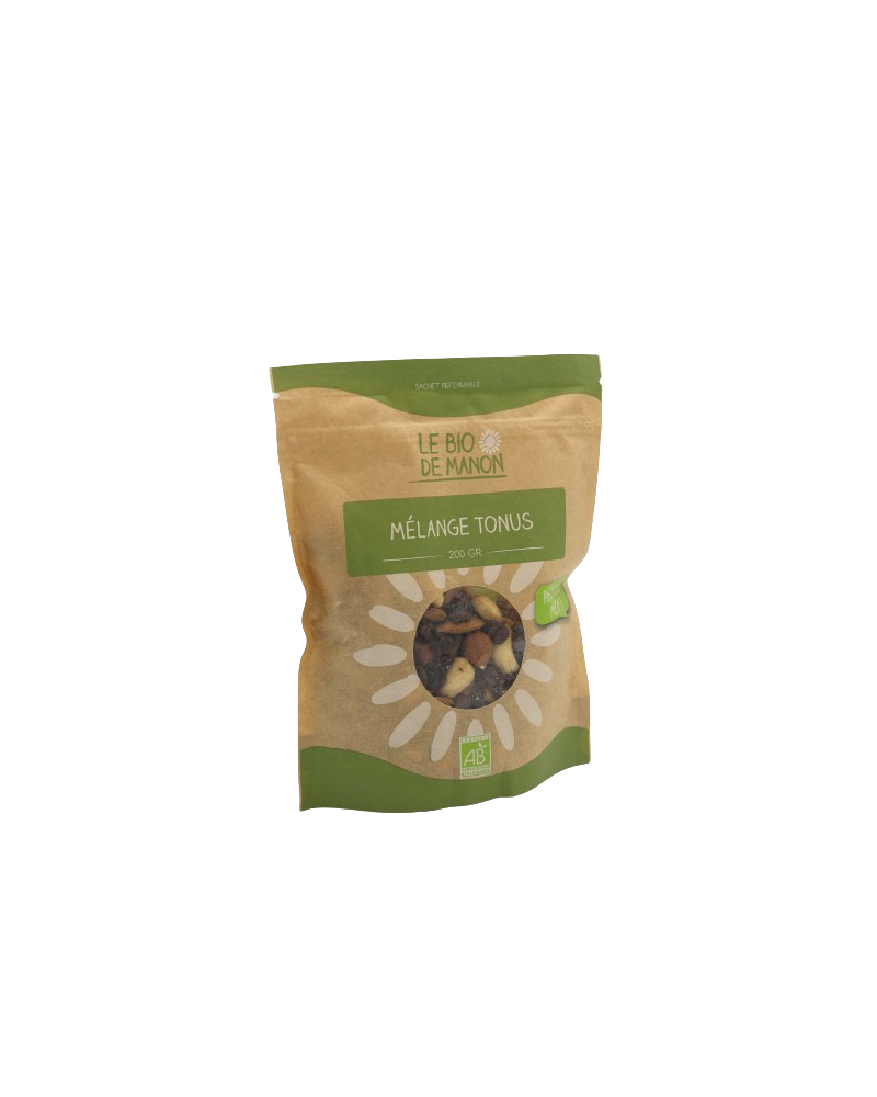 Notre Mélange Tonus est 100 % bio, préparé sans additifs ni conservateurs, pour un plaisir aussi sain que gourmand !
