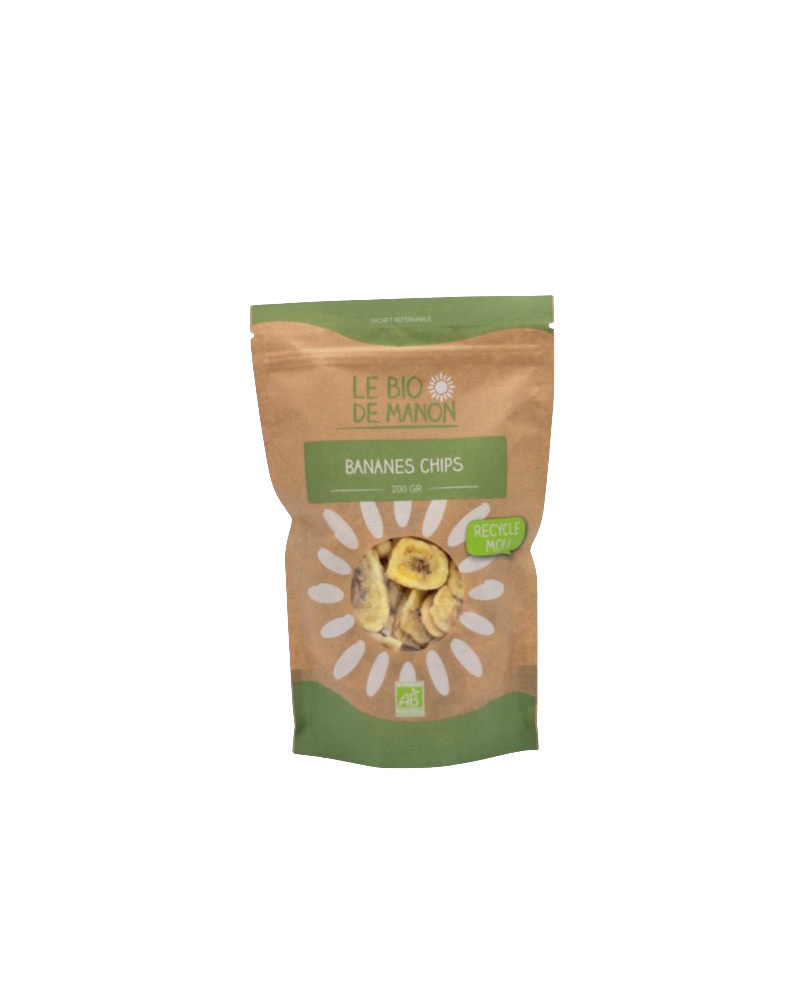 Nos bananes chips sont issues de l’agriculture biologique certifiée Ecocert, frites à l’huile de noix de coco et légèrement sucrées pour préserver toutes leurs qualités nutritionnelles.