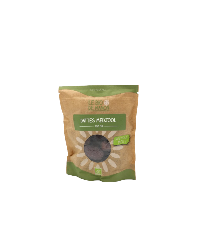 Nos dattes Medjool sont sans sucre ajouté, et issues de l’agriculture biologique certifiée Ecocert, garantissant une qualité optimale sans additifs ni conservateurs.