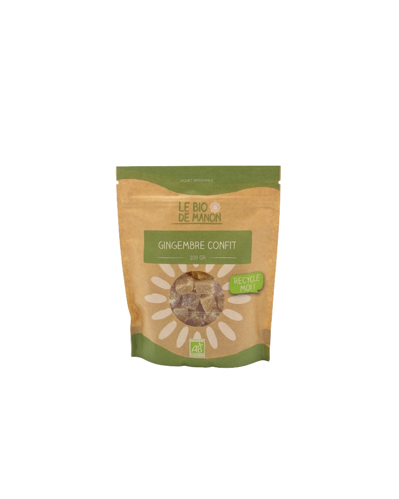 Notre gingembre confit est issu de l’agriculture biologique, sans additifs ni conservateurs, garantissant une qualité optimale et un goût authentique.
