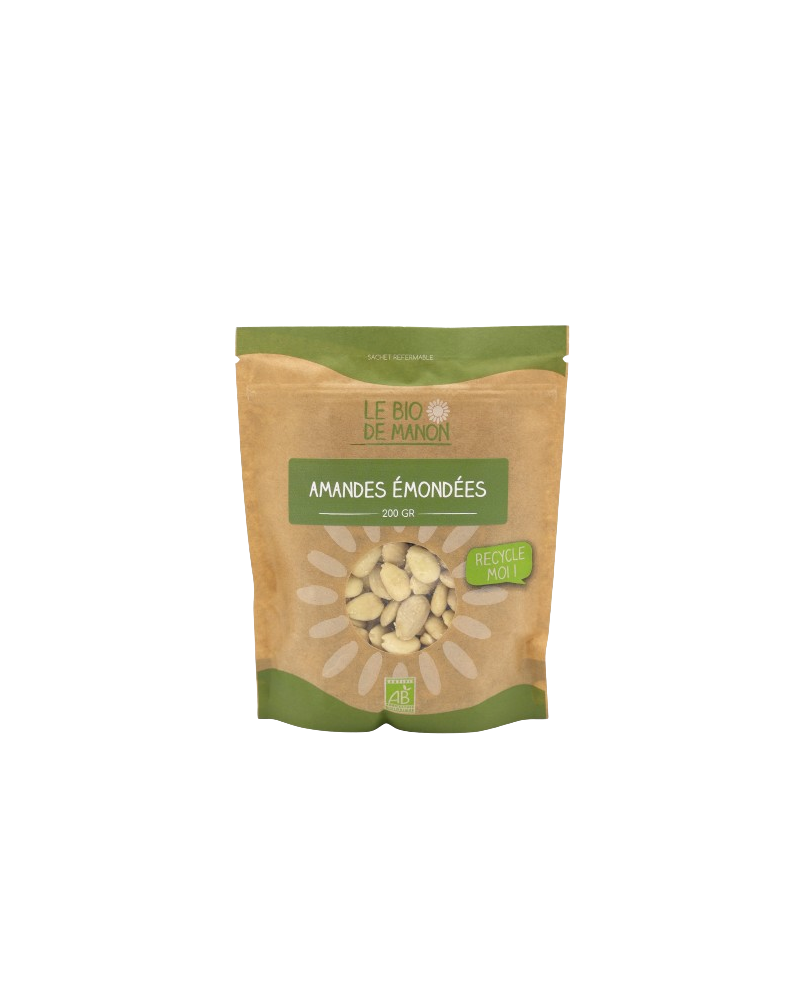 Nos amandes émondées sont 100 % bio et sans additif, garanties sans colorants ni conservateurs.