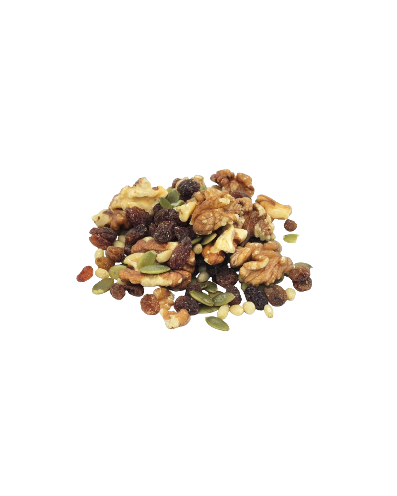 - Fibres & antioxydants : raisins secs et graines de courge favorisent une digestion saine, régulent l’appétit et aident à lutter contre le stress oxydatif.