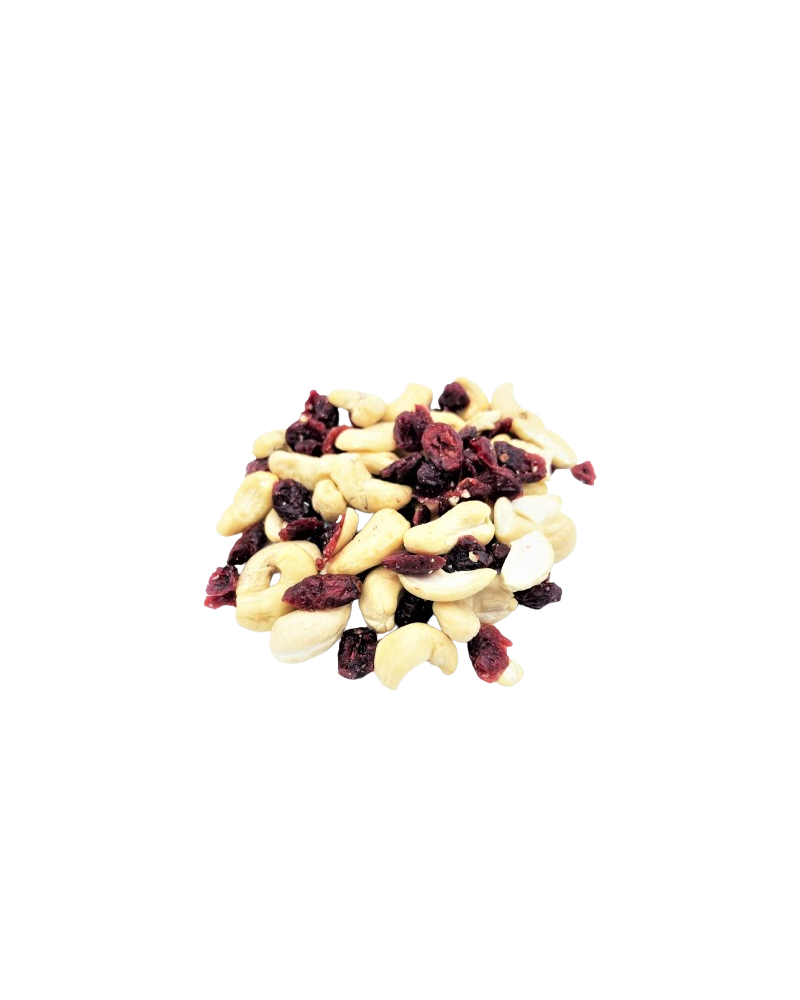 - Fibres naturelles : cranberries et cajous favorisent une digestion fluide et une satiété durable.